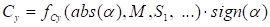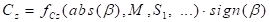 Функция коэффициента поперечной аэродинамической силы, направленной вдоль вектора Z узла Node*. Функция зависит от угла скольжения