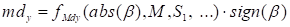 Функция производной коэффициента демпфирующего момента рыскания, направленного вдоль вектора Y узла Node*. Функция должна быть отрицательной. Это соответствует направлению демпфирующего момента рыскания в сторону, противоположную проекции вектора угловой скорости звена на вектор Y узла Node*. Функция зависит от угла скольжения