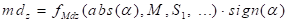 Функция производной коэффициента демпфирующего момента тангажа, направленного вдоль вектора Z узла Node*. Функция должна быть отрицательной. Это соответствует направлению демпфирующего момента в сторону, противоположную проекции вектора угловой скорости звена на вектор Z узла Node*. Функция зависит от угла атаки