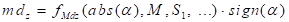 Функция производной коэффициента демпфирующего момента вокруг вектора Z, направленного вдоль вектора Z узла Node*. Функция должна быть отрицательной. Это соответствует направлению демпфирующего момента в сторону, противоположную проекции вектора угловой скорости звена на вектор Z узла Node*. Функция зависит от угла атаки