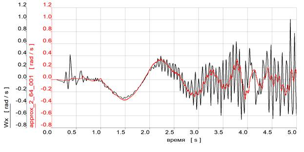 На рис. 9 показан пример использования датчика аппроксимации полиномом степени 2 по 64 точкам с шагом 0.01 [ s ], Wx – исходный датчик.