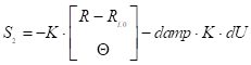 Силовое воздействие со стороны элемента на узел Node2* равно сумме упругого и демпфирующего воздействий. Его значение в текущий момент времени определяется в соответствии со следующим выражением: