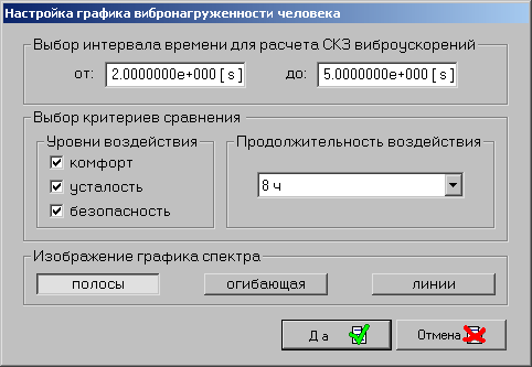 Рис. 2. Окно Настройка графика вибронагруженности человека