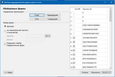 Рис. 6. Импорт редуцированной модели упругого тела. Этап 1