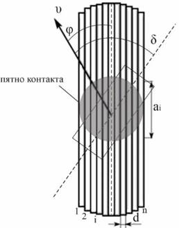На рис. 5 приведена модель шины, используемая для расчета жесткостных характеристик, которая разбита на n дисков.