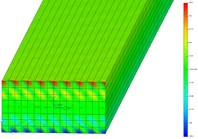 На рис. 8 показаны поля нормальных напряжений по X в области заделки при испытании всех 3-х балок, цветовая легенда для всех моделей одинаковая, а значения на ней указаны в МПа.