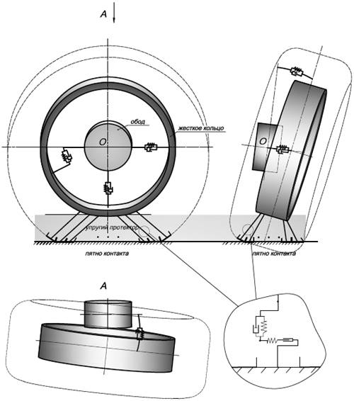Рис. 1. Схема модели взаимодействия колеса с опорной поверхностью