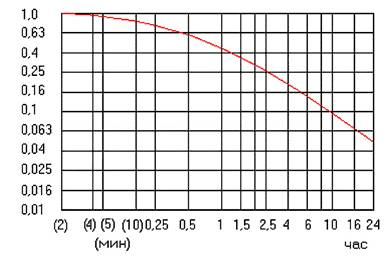 В соответствии с [1] воздействие вибрации нормируется для 1, 16 и 25 минут и для 1, 2.5, 4, 8, 16 и 24 часов. Таблица 2 – приведены численные значения коэффициента пересчета предельных СКЗ виброускорений для нормируемых времен.