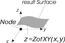 Данный метод создает в системе координат заданного узла поверхность по заданной функции Z, зависящей от X и Y. Внешней стороной поверхности является сторона, обращенная в направлении вектора Z заданного узла.