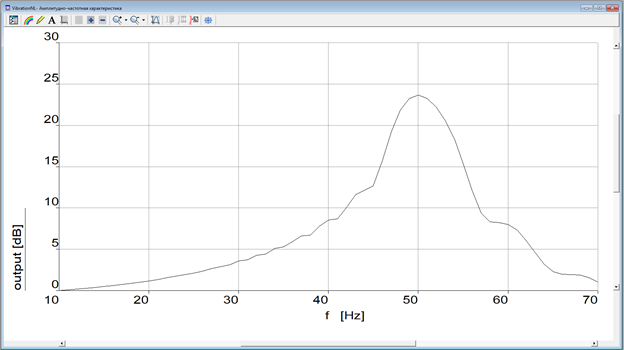 command Vibration=vibrationResponse( list( output ), range( 10 [Hz], 70 [Hz], 1 [Hz] ), freqDamping = yesDamping: );