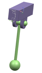 Для удобства работы с импортированной геометрией уже в ПК EULER следует разделить составляющие модели на три группы – структурные единицы, чтобы в дальнейшем унифицировать операции с ними. В первую группу будут входить подвижные элементы модели (шарик, стержень-цилиндр, осевой стержень, два фиксирующих наконечника). Во вторую группу будут входить неподвижные элементы: параллелепипед, две проушины. В третью группу войдет точка. В рассматриваемом случае может оказаться целесообразным использовать EMC-файл с помощью расширенных настроек экспорта.