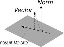 Данный метод создает вектор, направление которого совпадает с проекцией вектора Vector на плоскость, перпендикулярную вектору Norm. Векторы Vector и Norm не должны быть параллельны.