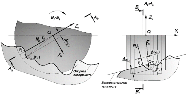 нормали вспомогательной плоскости и приложена в точке