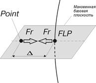 силового элемента перпендикулярна линии и проходит через точку Point. Точка FLP является точкой пересечения линии с базовой плоскостью