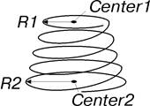 Данный метод создает коническую спираль с прямой осью и постоянным шагом. Центры оснований спирали задаются точками Center1 и Center2. Радиусы оснований спирали определяются скалярами R1 и R2.