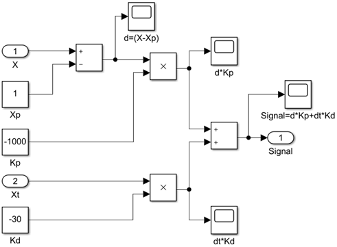 sensor d "рассогласование"=X-XP;