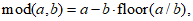 Остаток от деления числа a на b с округлением частного в сторону уменьшения.