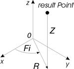 Положение точки определяется значениями цилиндрических координат Fi, R, Z в системе координат проекта (см. рис. 3).