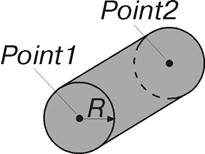 cylinder(Point1, Point2, R, mass=..., density=..., color=..., visible=...)