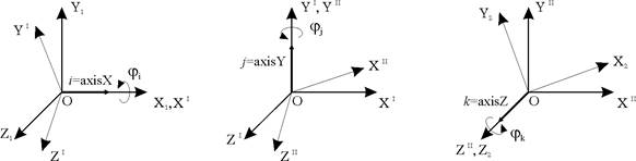 В общем случае могут быть заданы 12 комбинаций трех последовательных поворотов. Наиболее часто используемыми на практике являются следующие комбинации: