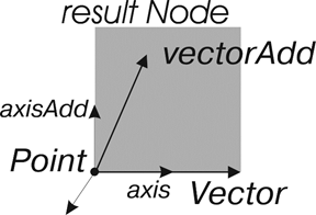 Данный метод создает узел с центром в точке Point и ориентацией, ось axis которой параллельна вектору Vector. Дополнительная ось ориентации узла axisAdd лежит в плоскости, построенной на задаваемых в методе векторах Vector и vectorAdd, и направлена в ту же сторону, что и вектор vectorAdd. Третья ось выбирается таким образом, чтобы ориентация узла составляла правую тройку. См. рис. 5.Каждый из параметров axis, axisAdd может принимать одно из значений axisX:, axisY:, axisZ:. Параметры axisAdd и vectorAdd являются необязательными и по умолчанию соответствуют оси X проекта. Если необязательный именованный параметр axisAdd определен пользователем, то должен быть определен и vectorAdd, а также должно выполняться условие axis