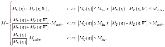 Упругая и демпфирующая составляющие момента трения определяются по формулам: