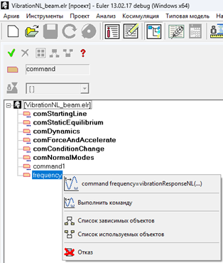 Также для выполнения команды можно выбрать в меню Анализ пункт Вибрационный анализ отклика нелинейной системы /Список команд.