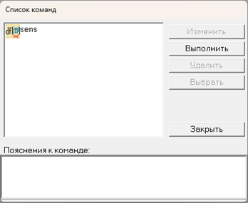 Также для выполнения команды можно выбрать в меню Анализ пункт Анализ чувствительности (гиперкуб) /Список команд. В полученном списке команд необходимо выбрать требуемую команду и нажать кнопку Выполнить (рис. 18).