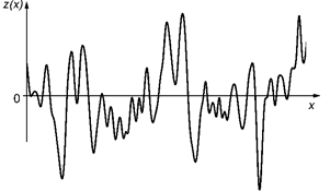 Микропрофиль дороги описывается в виде функции высот неровностей от продольной и поперечной координат участка дороги. Высота неровности отсчитывается от средней линии микропрофиля [1], как это показано на рис. 5.