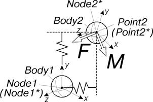 ). Узел Node2* является узлом силового воздействия элемента на звено Body2.