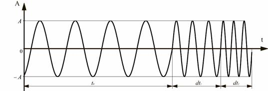Рис. 4. Функция гармонических колебаний с переменной частотой