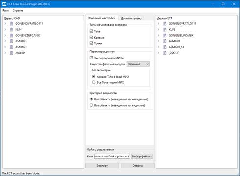 Рис. 13. Выбор инструмента Экспорт в ECT в Creo Parametric