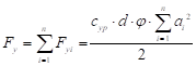 Боковая сила, действующая в направлении оси Y, приложенная на каждый i-ый дискретный диск модели шины, вычисляется по формуле: