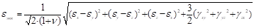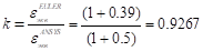 . При моделировании КЭ-модели коэффициент Пуассона был принят равным 0.39. Следовательно, значение эквивалентных деформаций по Мизесу для упругого тела пластины с отверстием в ПК EULER будут связаны с рассчитанными в КЭ-комплексе соотношением:
