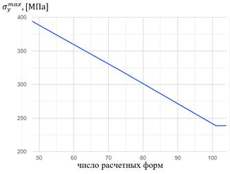 Рис. 13. Максимальное нормальное напряжение по оси Y