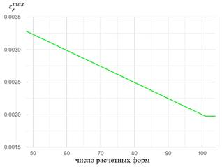 Можно заметить, что использование форм с частотами свыше 12000 [Hz] излишне, так как значения максимальных напряжений и деформаций не изменяются вплоть до 4-й значащей цифры.