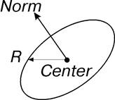 Данный метод создает окружность радиусом R с центром в точке Center, плоскость которой перпендикулярна вектору Norm.