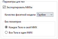 − флажок «Экспортировать МИХи». Включенное состояние соответствует добавлению массово-инерционных характеристик тел при экспорте;