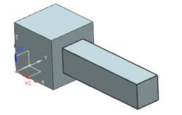 Рассмотрим экспорт геометрии в режиме «Основные настройки» на примере тестового образца из САПР Siemens NX 2306, состоящего из куба и присоединенного к нему прямоугольного параллелепипеда. Для экспорта в режиме «Основные настройки», опция экспорта «Расширенная конфигурация экспорта» на вкладке «Дополнительно» должна быть не активной. На рис. 3 изображен внешний вид тестового образца.
