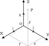 , направление которых совпадает с направлениями соответствующих координатных осей, составляют правую тройку. Положение точки P пространства в прямоугольной декартовой системе координат выражается тремя числами