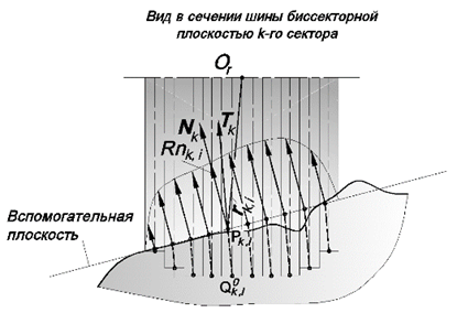 -м секторе шины и расчет эквивалентной плоскости описаны в пункте «Упругие силы радиальной деформации шины».