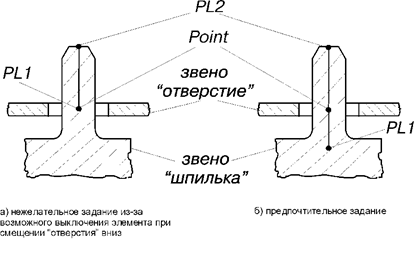 Вариант а) является нежелательным, так как при смещении вниз звена «отверстие» элемент будет выключен, что неправильно с точки зрения работы этого узла.