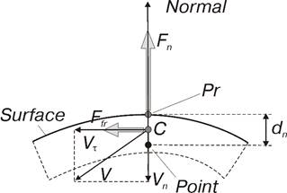 ![]() Рис. 3. Корректная реализация модели силового взаимодействия точка-поверхность