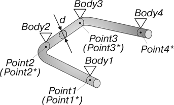 3. Создается точка Point3*, которая прикрепляется к звену Body3 и в момент создания совпадает с точкой Point3. Точка Point3* является точкой силового воздействия элемента на звено Body3.