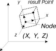 Положение точки определяется значениями декартовых координат X, Y, Z в системе координат заданного узла (см. рис. 2).