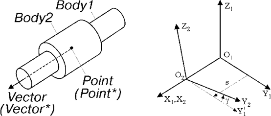 cylindrical(Body1, Body2, Point, Vector, freeze=..., work=..., color=..., visible=...)