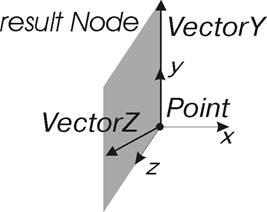 Данный метод создает узел с центром в точке Point и ориентацией, вектор Y которой параллелен вектору VectorY. Вектор Z ориентации узла лежит в плоскости, построенной на задаваемых в методе векторах VectorY и VectorZ, и направлен в ту же сторону, что и вектор VectorZ. Вектор X выбирается таким образом, чтобы ориентация узла составляла правую тройку. Задаваемые в методе векторы VectorY и VectorZ не должны быть параллельными. См. рис. 9.