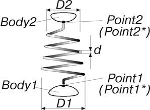 springCoiled(Body1, Point1, Body2, Point2, D1, D2, d, N, G, F0=..., s0=..., damp=..., work=..., color=..., visible=...)