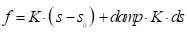 Сила, действующая со стороны пружины на каждую точку (Point1*, Point2*), равна сумме упругой и демпфирующей сил. Ее значение в текущий момент времени определяется в соответствии со следующим выражением: