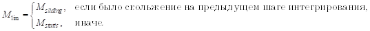 Значение момента, действующего в текущий момент времени на звено Body1 в направлении вектора Vector*, вычисляется как сумма упругой и демпфирующей составляющих, которая ограничена моментом трения скольжения, если мы находимся в скольжении, или моментом трения покоя в противном случае: